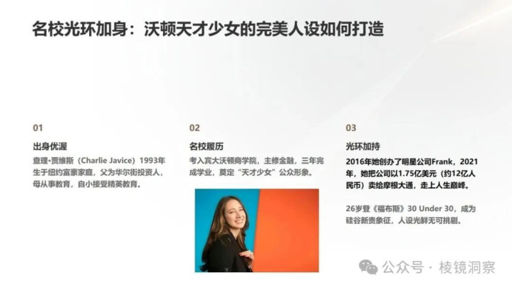 一个成立没几年的创业公司,用户数突然暴增至400万,这么大的增长难道不该多打几个问号吗?可当时的情况是,贾维斯青春靓丽、名校出身,年纪轻轻就创业成功,在媒体上频频露脸,俨然一副“下一个扎克伯格”的架势。这样的精英人设很容易让人产生信任感,觉得她不可能也没必要造假。再加上Frank所处的赛道是炙手可热的教育金融科技,市场前景被普遍看好,摩根大通或许也想趁热打铁抢占先机。在这种情况下,尽职调查团队会不会因为过于相信卖方提供的资料,而放松了应有的审慎?