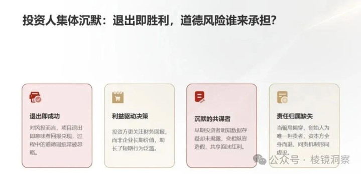 如果“名校背景 + 媒体光环 + 投资人背书”一起出现时,那么原本应该带着放大镜的尽调,可能只剩下放大镜的柄——大家都知道要看,但谁也不想太深究,生怕把交易拖死、把手续费和奖金搭进去。