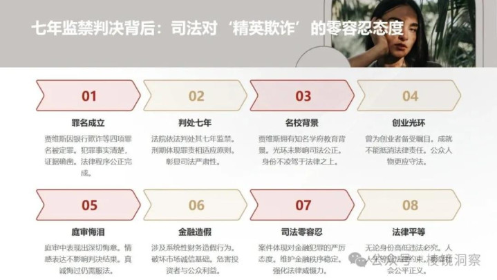 贾维斯案中,她本人的精英形象无疑为骗局增色不少——谁能想到一个常春藤毕业的美女学霸会铤而走险造假呢?这种心理盲区使得尽调人员可能对一些明显异常的数据放松质疑,或者轻信对方给出的解释。而实际上,学历和履历并不能保证人品和诚信,尽职调查还是得一码归一码地做。